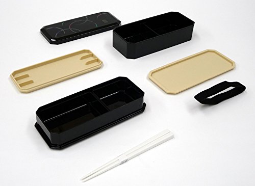 1 X Cool Japanese Bento Lunch Box with Belt , Bag Chopsticks - Waon Black