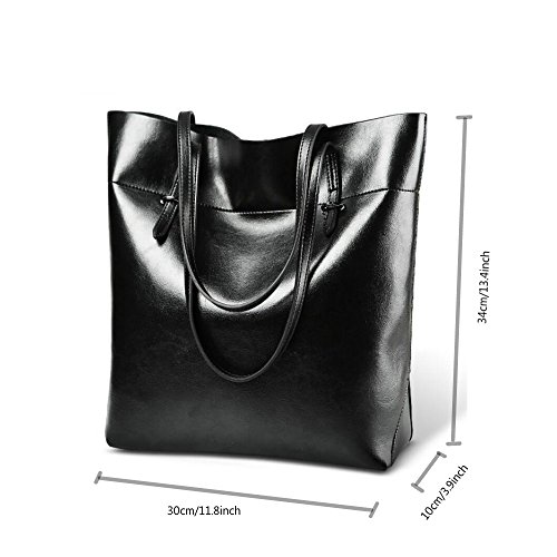 -. Feature : MATERIAL: Style1: High Quality Synthetic Leather (Texture is relatively shallow), Style2: High Quality Greased Synthetic Leather (Texture is clear) / CLOSURE: Top Zipper Closure / DIMENSIONS: 12.2''(L) x 5.1''(W) x 13.8''(H), Shoulder drop: 9.5" / POCKETS: 2 Generous main pockets, 1 Inner zipper pocket and 1 invisible zipper pocket. Have phone slot and card slot. 1 Exterior back wall zipper pocket. / FEATURES: Decorative Gold-tone Hardware, Zip-pockets in Middle and Back, easily carry your mobile phone, wallet, cosmetic, IPAD, umbrella and other daily things.