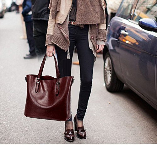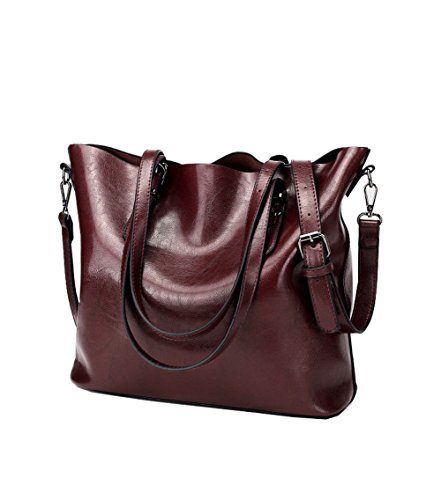 Ecokaki Women’s Vintage Large PU Leather Travel Handbag Hobo Bag Shoulder Bag Sling Bag Cross Body Bag Dark Red