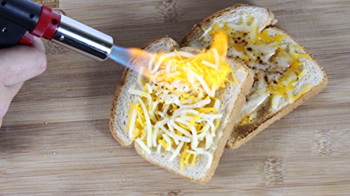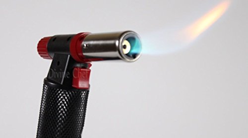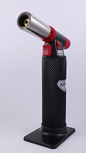 • RESTAURANT GRADE CULINARY TORCH: The sleek torch body comes with a pistol grip ignition trigger, a comfortable diamond textured grip, and an extra wide base perfect for making those tasty desserts you desire!