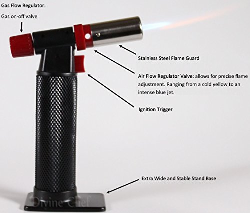 DIVINE CHEF PROFESSIONAL CULINARY TORCH WITH ADJUSTABLE FLAME AND SAFETY LOCK | BEST TORCH FOR COOKING CREME BRULEE | KITCHEN BLOW TORCH | BUTANE COOKING TORCH |