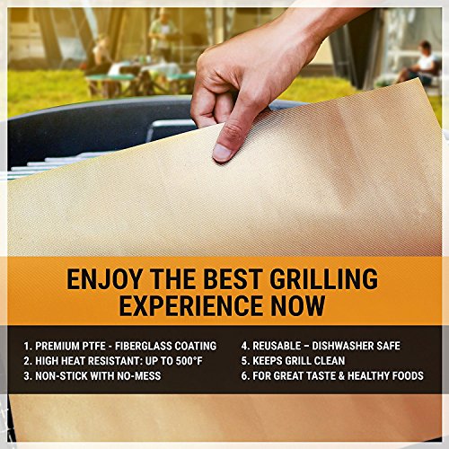 - ❖ FLAVOR ENHANCERS FOR GREAT TASTE: The best mat conducts heat for proper cooking of food however at the same time it gives reduced flare-ups as all the sauces and juices remain on the food instead of being dropped from the grill on the hot flame. It preserves original flavors and thus results in a better taste of food. It is perfect for meat, vegetables, fish, shrimp, pizza, bake, even pancakes, bacon and eggs. Let's become a professional grill master with these essential grilling accessories.