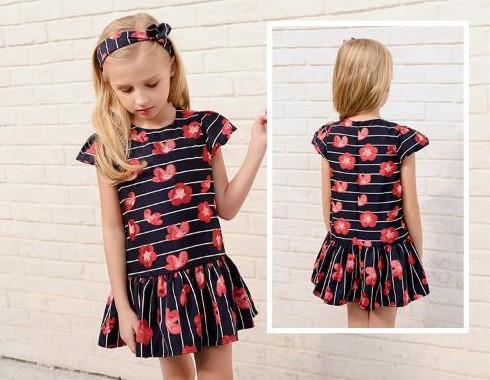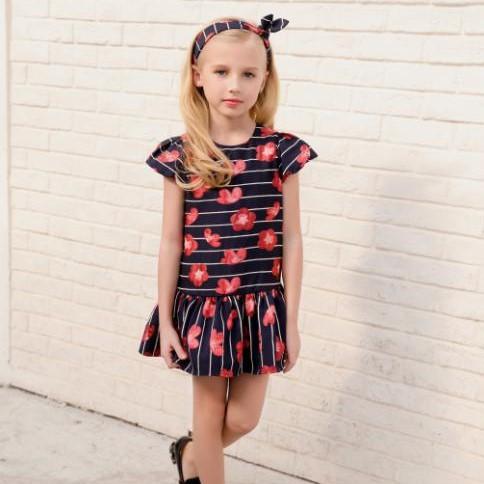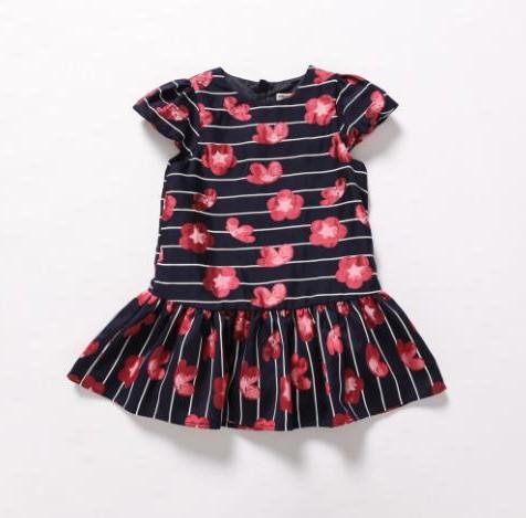 ・キーワード:キュート 花柄 ブラック ボーダー キッズファッション キッズワンピース 2018年秋トレンド ワンピース