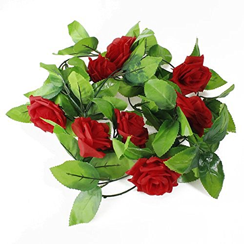 - Title : 1 X Artificial Rose Silk Flower Green Leaf Vine Garland Home Wall Party Decor Wedding Decal (Reds)