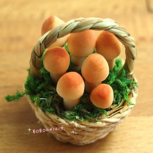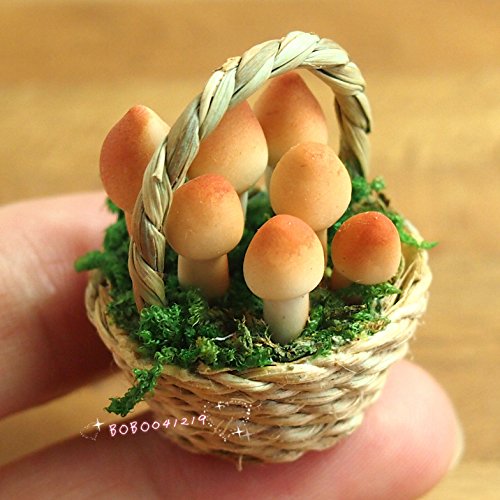 -. Title : Bobominiworld A Basket Of Handmade Mushroom Dollhouse Miniatures Decoration 1:12 Scale Height 3.8cm Brown