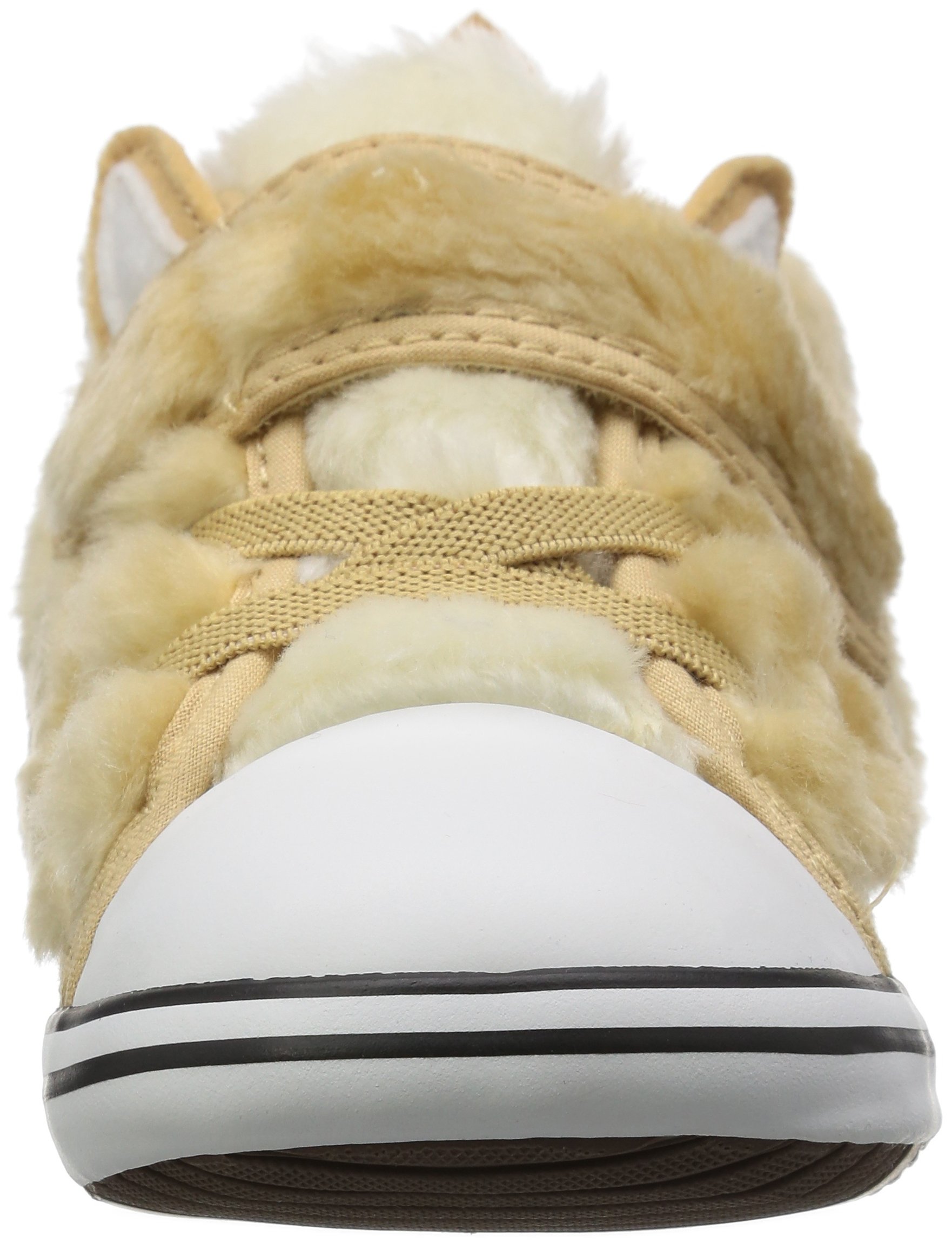 The fox uses brown and white on the upper, wolf uses the combination fur of gray and white.
