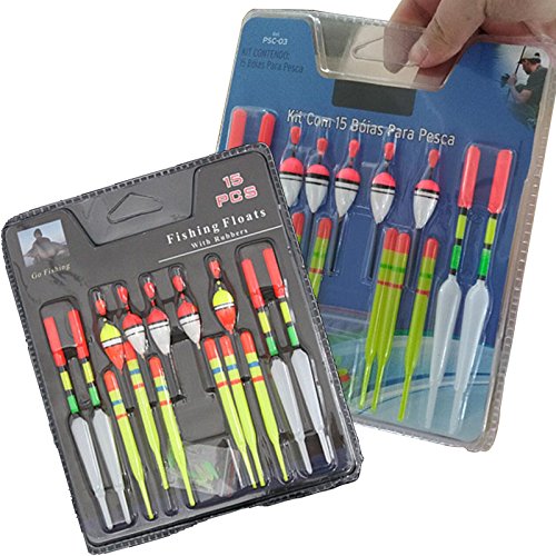 -. Title : 15 Pieces Set Vertical Buoy Sea Fishing Floats Assorted Size for Most Type of Angling with Attachment Rubbers Fishing Lures