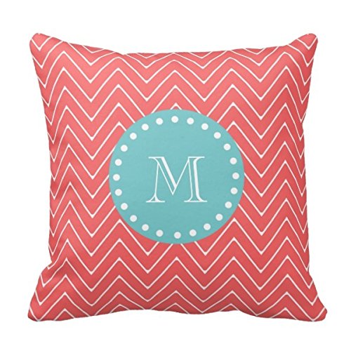 - Title : Decors Coral Chevron Pattern | Teal Monogram Pillow