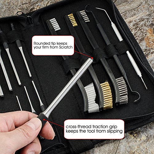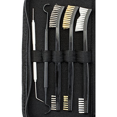 5 PIECE DOUBLE-ENE BRUSHES & PICKS: 3 Piece Brushes Required to the Fine Work in Confined Space. 1 Metal Pick is Rigid Enough to Scrape Debris. 1 Plastic Pick is to Clean Hard-to-Reach Areas without Scratching the Finest Surface.