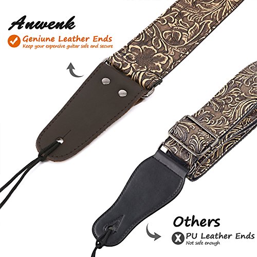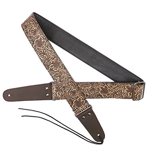Cool Looking&Stylish - Guitar strap with vintage imprinting flower on surface. Bronze strap Looks retro and never be out of fasion. Bronze leather ends perfectly matches the strap.