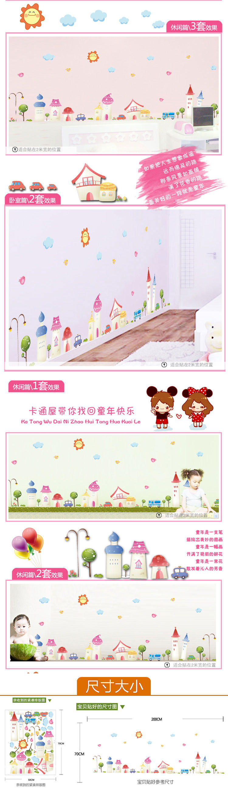 可移除墙贴纸 卡通小镇 踢脚线防水墙纸贴画儿童房教室布置幼儿园