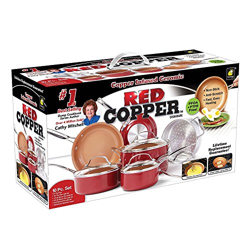 -. Title : Red Copper Ceramic Non-Stick 10 Piece Cookware Set by BulbHead