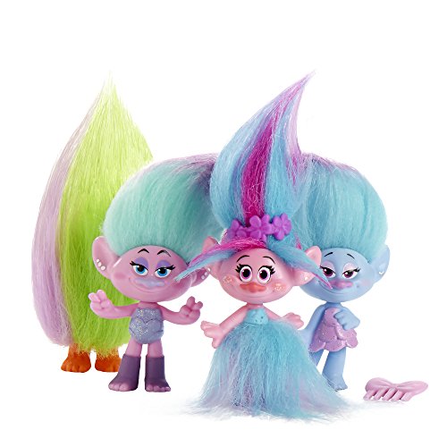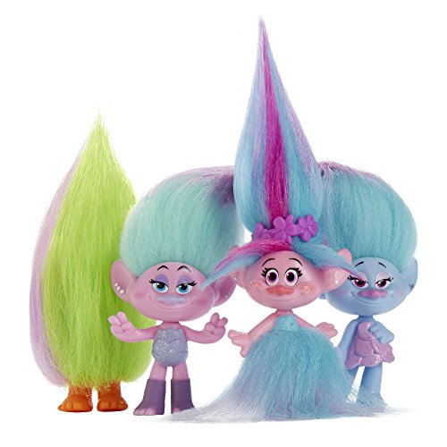Get in on the fluffy-haired fun! Linked together by the loop of brightly colored hair they share, Satin and Chenille love to design dresses and styles for their friends. Play with these fashionable favorites on stylish adventures with the Poppy’s Fashion Frenzy multi-pack. Inspired by the movie, this set includes 4 characters: Poppy, Satin, Chenille, and Fuzzbert. Of course, these colorful figures feature wild hair and fashion fun. This set also includes a comb and headband for tons of hairstyling! DreamWorks Trolls Copyright 2016 DreamWorks Animation LLC. All rights reserved. Hasbro and all related terms are trademarks of Hasbro.Feature