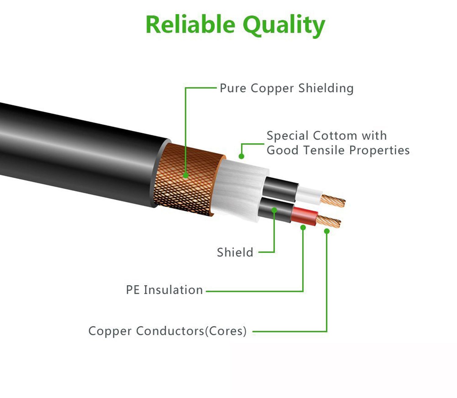 ◆ Shielded pure copper core wire, thick aluminum lap shield and double shield by high density braiding, high efficiency transfer of signals, guarantee of pure tone