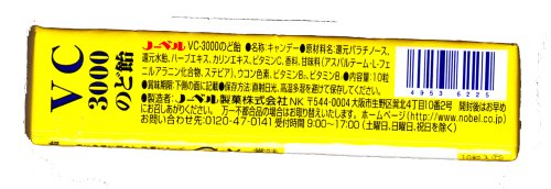 原材料:還元パラチノース、還元水飴、ハーブエキス、カリンエキス、ビタミンC、香料、甘味料(アスパルテーム・L-フェニルアラニン化合物、ステビア)、ウコン色素、ビタミンB2、ビタミンB1