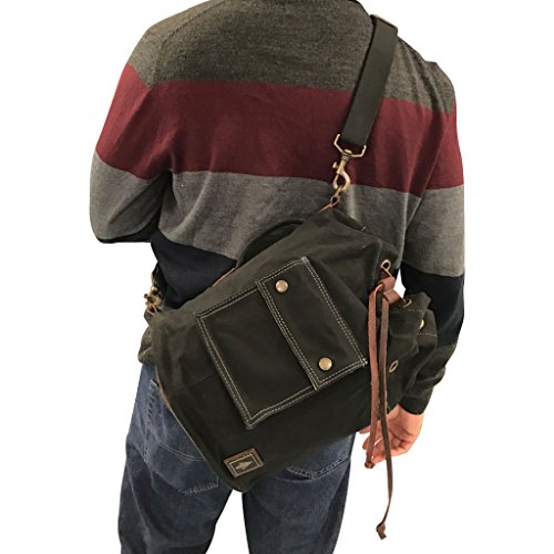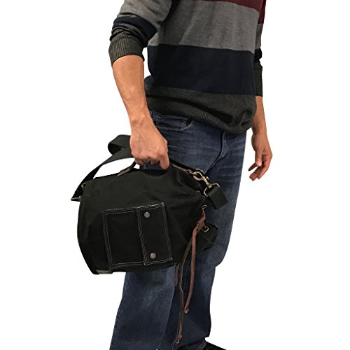 -. Title : DamnDog Canvas & Leather Small Haul Bag - Tar Black