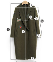 尺码 ①前衣长 ②后中长 ③胸围 ④下摆围 ⑤肩宽 ⑥袖长 ⑦袖臂围