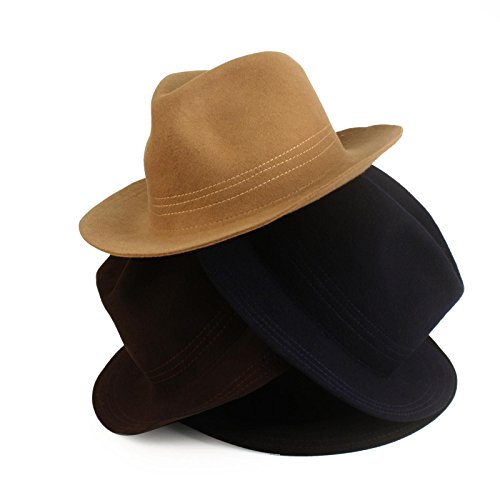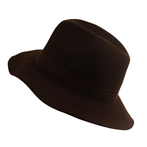 -. Title : Winter Wool Felt Stitch Fedora Floppy Panama 2-1/2" Wide Brim Dress Hat Brown