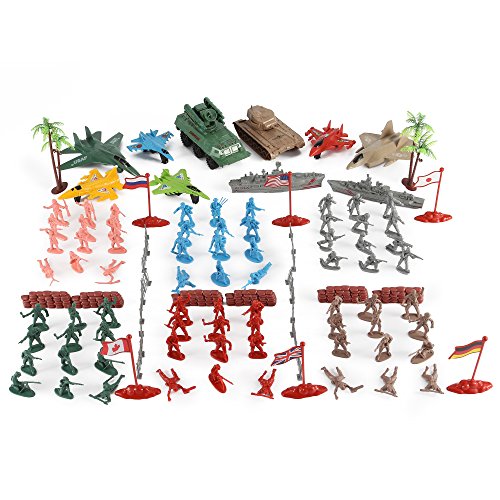 -. Feature : Bucket of Army Men 120 pcs (USA, Britain, Canada, Germany, Russia, Japan) / Large Tanks, Jets, Fighter Planes, Submarines, Flags, and More! / Comes in a heavy duty container to store the figures when not in use. / Size: Army Men Figures Stand up to 2-1/8 inches tall (54mm) / Six Nations & Colors: USA (Green), Great Britain (Blue), Germany (Grey), Japan (Pink), Canada (Red), Russia (Brown)