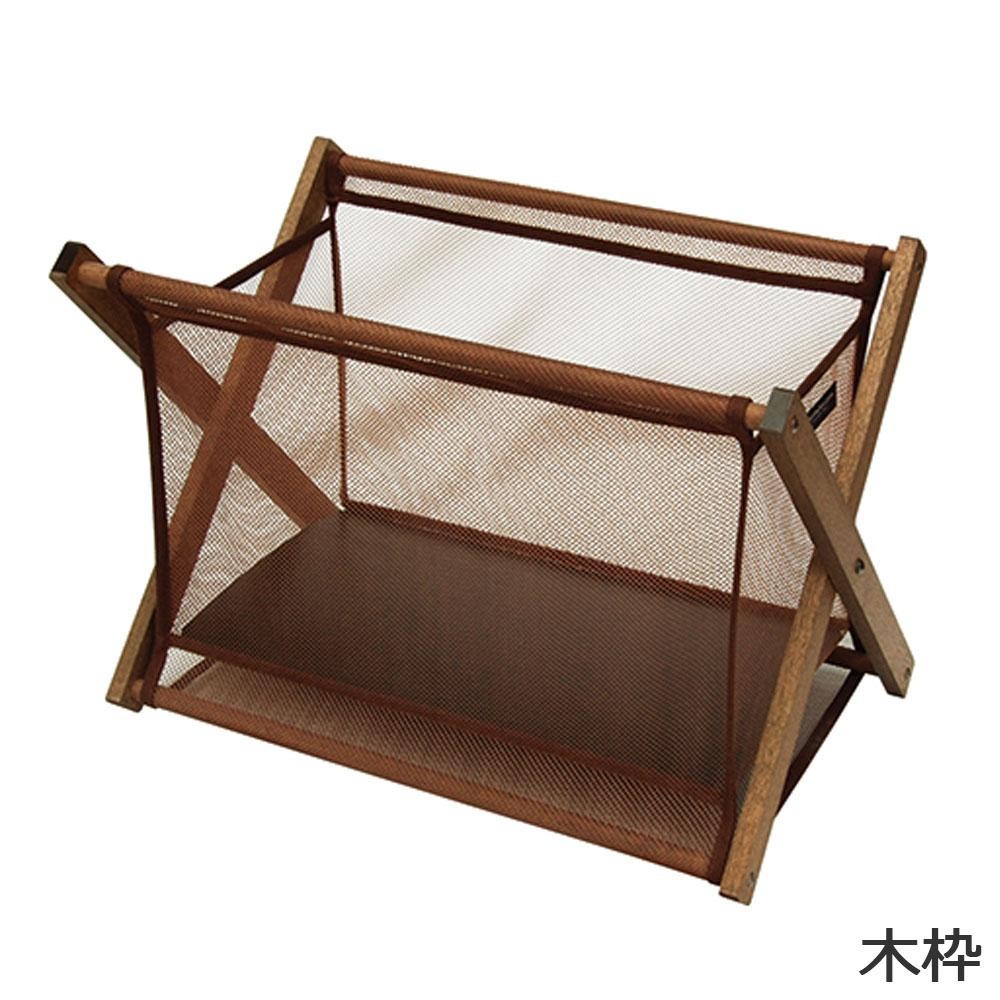 フレームに天然木を使用した手荷物入れです。和風の雰囲気にも馴染みます。袋部分はオールメッシュなので、中の物が一目で分かって防犯や置き忘れに効果的です。 |