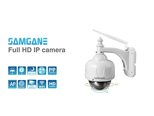 -. Feature : Stunning Full HD 1080P Video at 25fps,Seamlessly Stream Video to your Smartphone, Tablet, Apple Mac or Windows PC.You can Remote Record and Playback via Pre-Installed 16GB SD Card ,microphone and audio external interface is reserved / Smart motion detection & alert: schedulable motion detection, timing recording, motion recording and real-time motion alert via email and phone notification .Indoor/Outdoor Weatherproof Camera Housing - You can install the cameras indoors and outdoors to cover your home in all areas / Longer Night Vision: With 22Infrared LED, night vision up to 65 feet. Long distance makes you see further and bigger. It also enables a high-quality of day and night surveillance / Remarkable Field of View: Equipped with high quality 4x Optical Zoom Lens (f=2.8~12mm) Auto-focus, 355° Horizontal Pan and 90° Vertical Tilt Rotation Range Create a Complete 360° Coverage / WARRANTY?Full one-year warranty support provided directly by Samgane please feel free to contact us if you need assistance.