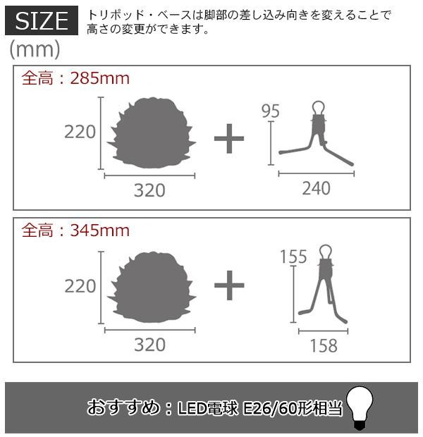 | 仕様 | 組立式 定格電圧:100V 50/60Hz 点灯:中間スイッチ(コンセント) 電球:E26/60形相当(LED/1個)※別売 |