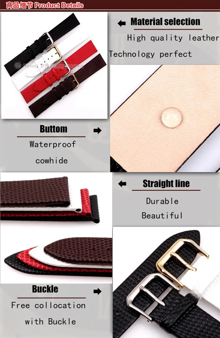 빈티지 정품 도마뱀 곡물 가죽 손목 밴드 크기 12 14 16 18 20 미리메터 초박형 쿼츠 시계 스트랩 벨트 무료 배송