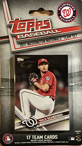 [Product Information]- This is a 2017 Topps Washington Nationals Factory sealed special edition 17 card team set; cards are numbered WAS-1 through WAS-17 and are not available in packs. Players included are Max Scherzer, Anthony Rendon, Shawn Kelley, Ryan Zimmerman, Daniel Murphy, Derek Norris, Gio Gonzalez, Jose Lobaton, Michael Taylor, Blake Treinen, Trea Turner, Joe Ross, Tanner Roark, Jayson Werth, Bryce Harper, Stephen Strasburg and Adam Eaton.