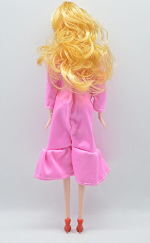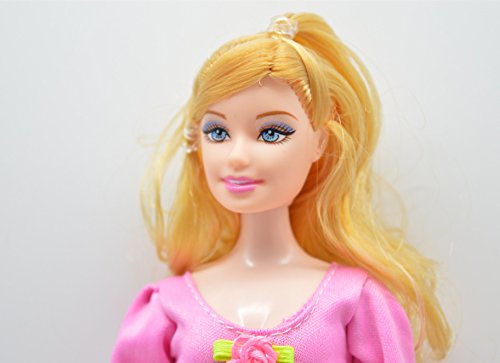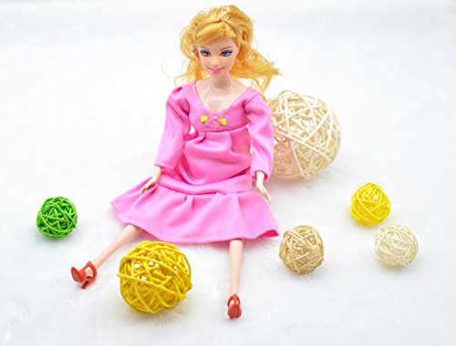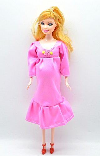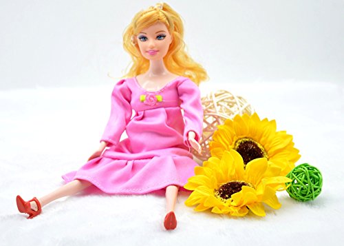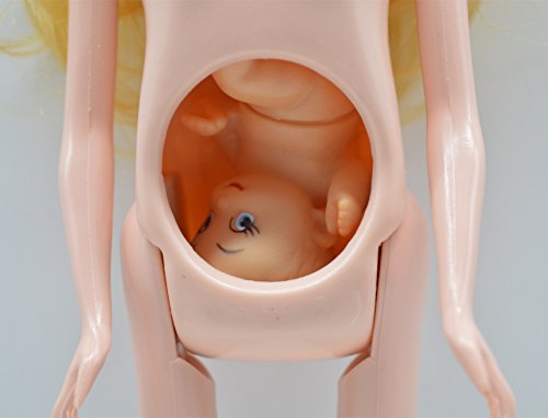 PREGNANT DOLL: blonde hair and blue eyes, mom doll height 11.3", baby doll height 2.1". Tummy can be opened and the baby doll is inside. Removable dress and shoes, flexible hands, legs, and baby doll's waist.