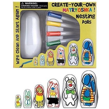 -. Feature : Set of 6 blank nesting dolls to decorate with dry-erase markers / Use the 5 markers included to create fun designs / Wipe clean with a damp cloth and start again / Encourages fine motor skills, sequencing skills, creativity / Ages: 6 years+