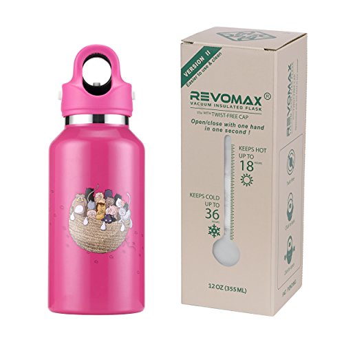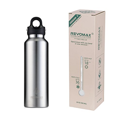 If you are tired of tedious screwing and unscrewing of an insulated water bottle with a traditional screw-cap and frustrated with the mess in your bag caused by an unsecured water bottle, RevoMax Twist-Free stainless-steel bottle, an iF Design winner could be the ultimate solution! With a screw capped vacuum insulated water bottle, for each small sip of coffee or hot chocolate, you may spend 10 to 20 seconds attempting to twist the cap open. A RevoMax lid can be fully detached or securely locked in less than 1 second single-handedly! A screw cap is tightened by twisting, but how hard should you twist it? The harder you screw it on, the harder you will need to unscrew it. If a water bottle is holding carbonated beverage or a lot of steam inside, it is even harder to unscrew. With RevoMax, constant force is automatically applied to the silicone seal as long as you pull the locking handle up until the middle safety button pops up. Therefore, no more leaks or loose caps. Every RevoMax lid is equipped with an air exhaust valve to relieve the pressure just before the cap is opened. There is no popping or struggling to unscrew the bottle even holding a carbonated beverage. Compared to a water bottle with a traditional screw-cap, RevoMax twist-free/thread-less flask is like a zipper, simply faster and better! Every RevoMax double walled water bottle has internal copper coating and is double sealed at its opening for better isolation, so its thermal performance is 50% better than most leading brands in its class! With RevoMax, your coffee stays piping hot for an entire day or your ice water stays cold for a couple days! Easy to Use and Clean RevoMax has spent two years implementing changes to improve the twist-free lid to ensure that it is user-friendly and easy to clean. Now, no mistake can be made during use, and no complicated instructions are needed for disassembly and reassembly. Hope you enjoy your RevoMax products, which will improve the way you stay hydrated!Feature