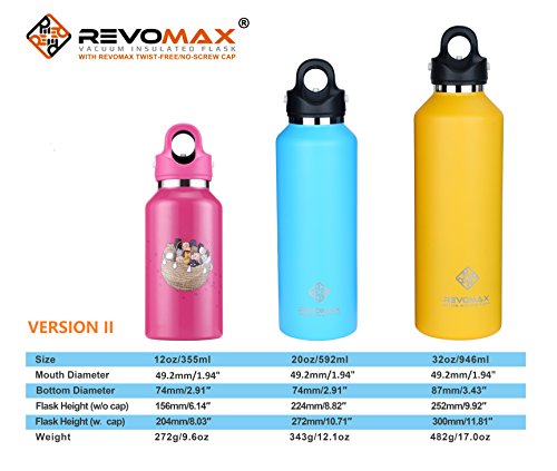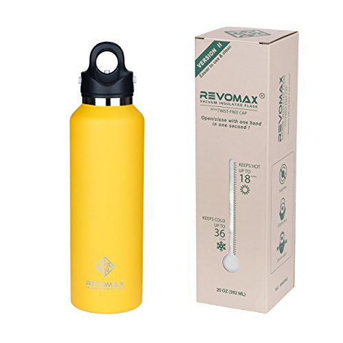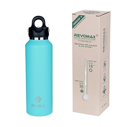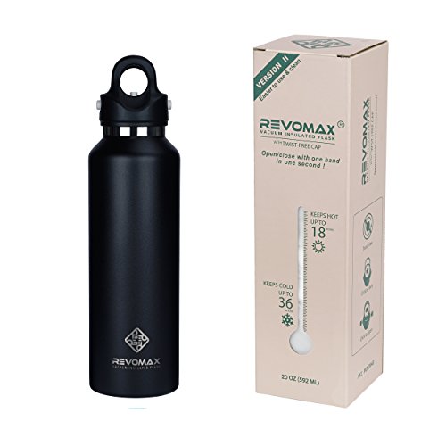 ★50% LONGER TEMPARATURE RETENTION: Double-wall vacuum insulation, double seal and copper-coated inner wall make RevoMax insulated water bottle outperform most of leading brands! It keeps beverages hot up to 18 hours and cold up to 36 hours!