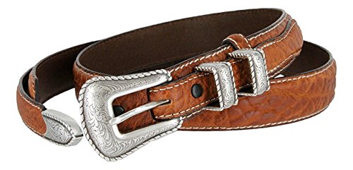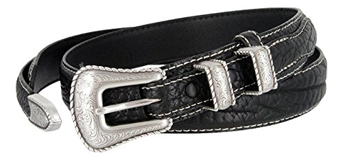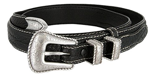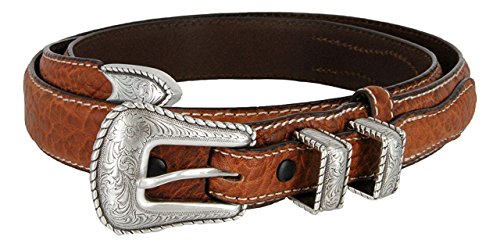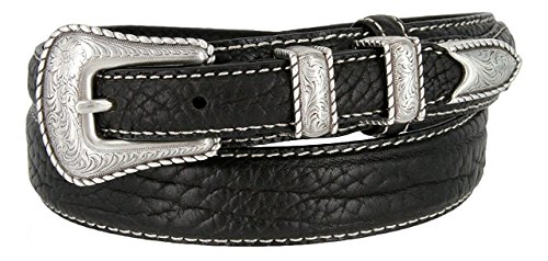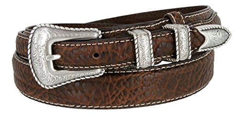 (Hagora)/Accessories/Belts Buckles/DIRECT FROM USA/Hagora Women 1-1/8" Wide Genuine Bison Leather White Stitch 4 Piece Buckle Belt