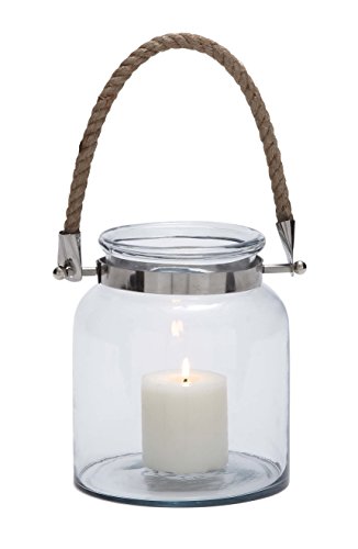 -. Title : Deco 79 Glass Metal Lantern with Rope, 8 by 10-Inch