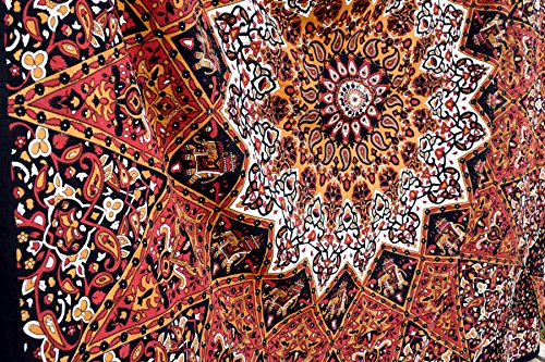 POPULAR HANDICRAFTS HIPPIE KALEIDOSCOPIC STAR INTRICATE FLORAL DESIGN INDIAN BEDSPREAD TAPESTRY 84X90 INCHES,(215CMSX230CMS) RED BLACK