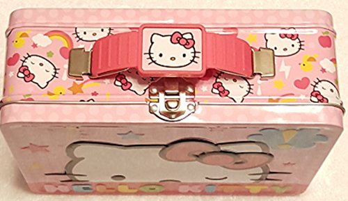Steel Construction Embossed Hello Kitty Box with Pink Handle and Latched Lid
