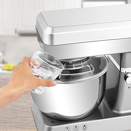 ✓One-piece pouring shield that fits onto the 5-quart stainless steel bowl. The tilting head lets you add ingredients without making a mess, and the anti-slip design keeps the machine steady.