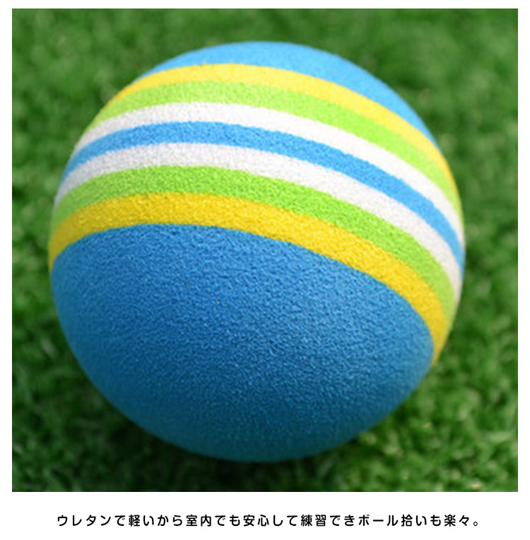 | カラフルでよく見える練習用ゴルフボール!ゴルフの練習に最適なウレタンボール。自宅、室内での練習に飛ばないボールでスィング練習! | |
