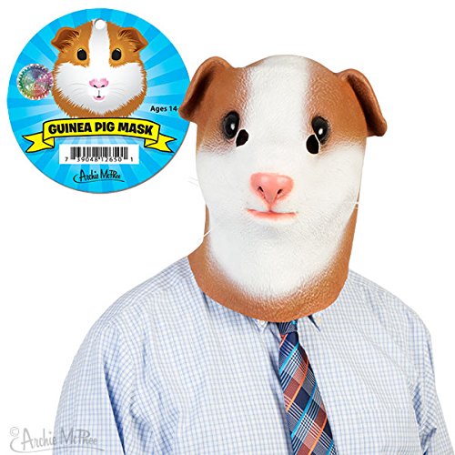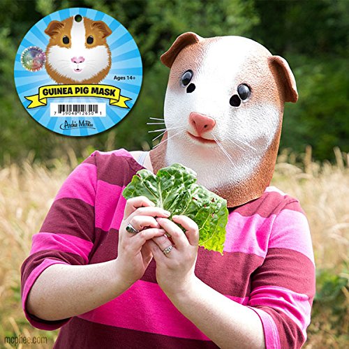 Guinea pigs are friendly little rodents that make perfect pets. This latex mask is so realistic it will make you want to sit in a glass room full of wood chips while you drink water from a metal tube. Fits most adult heads. Bagged with illustrated tag.