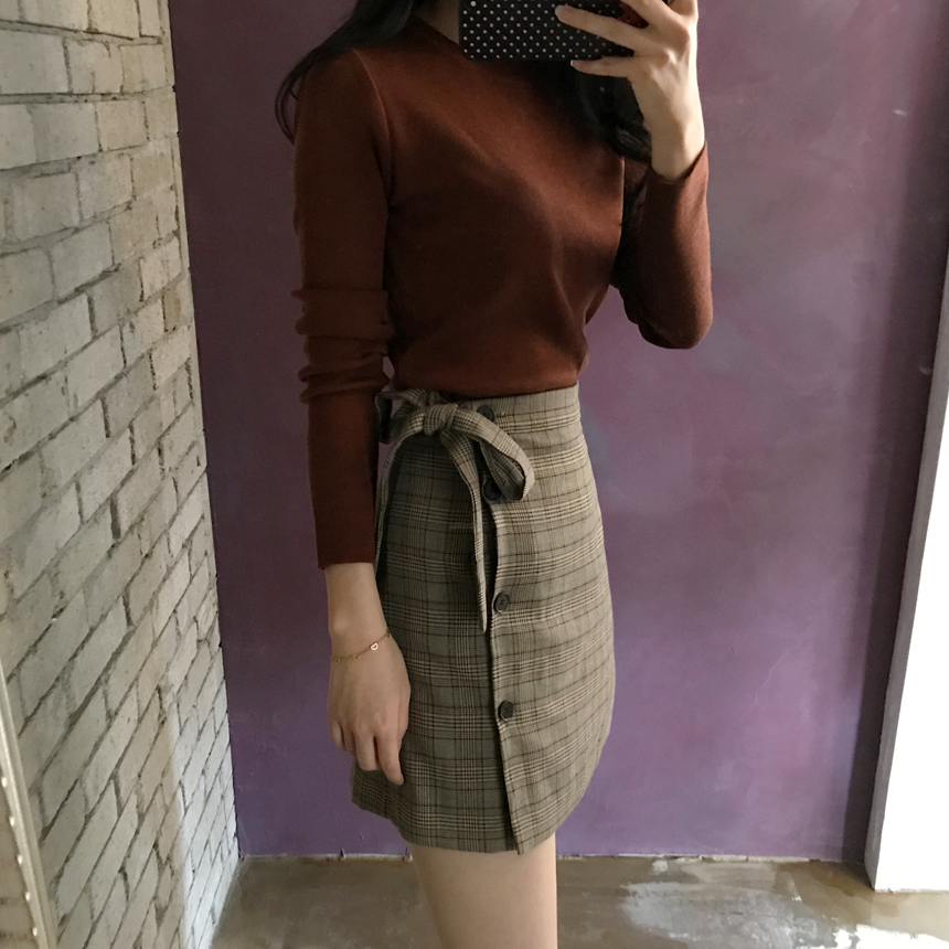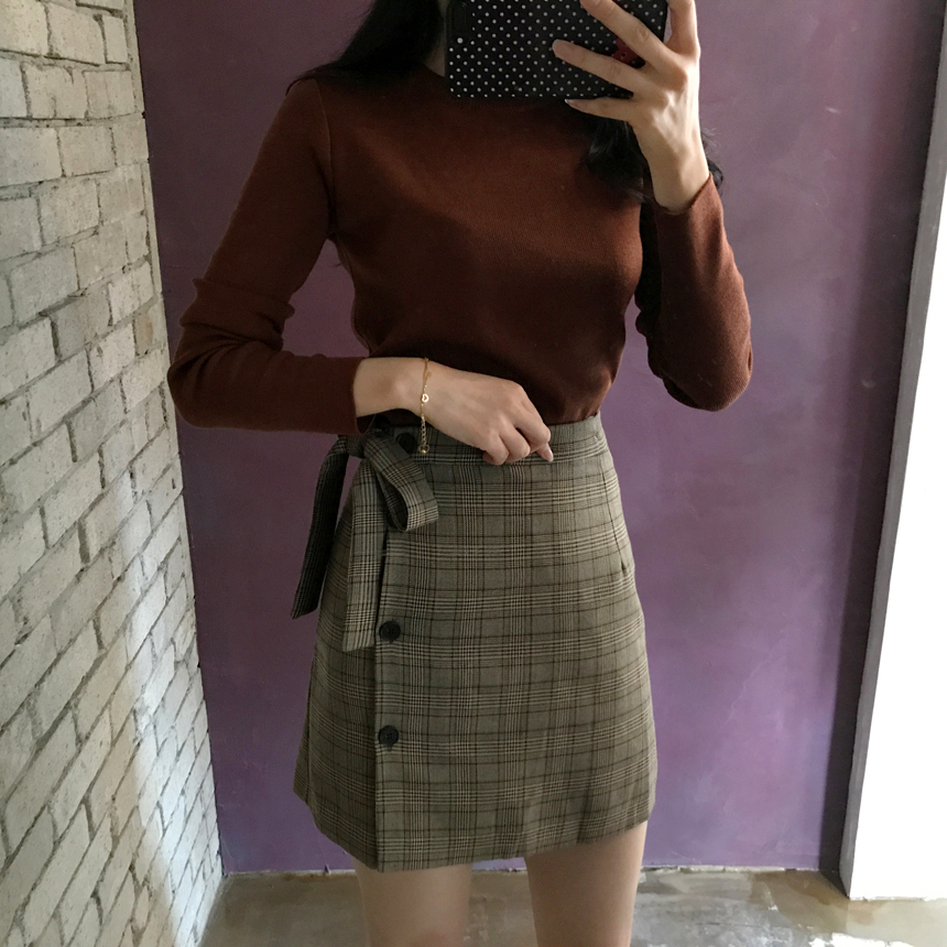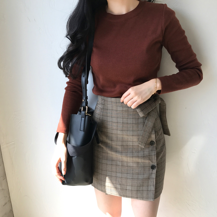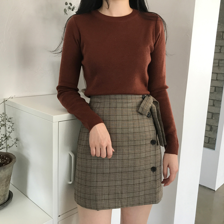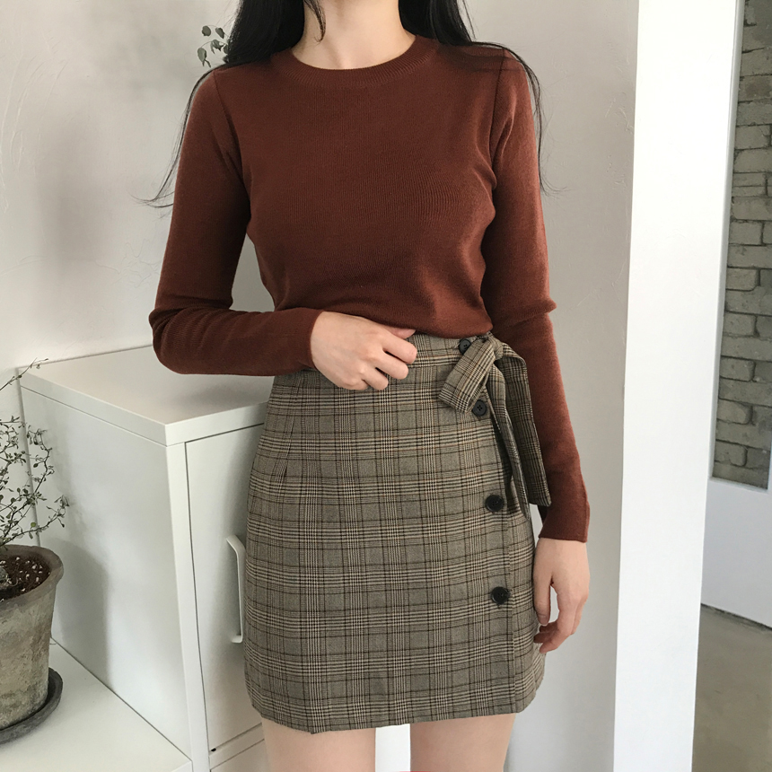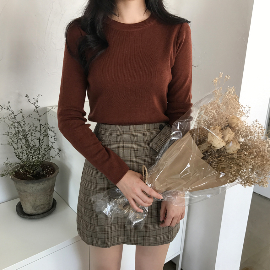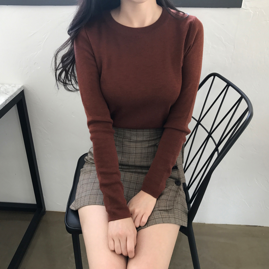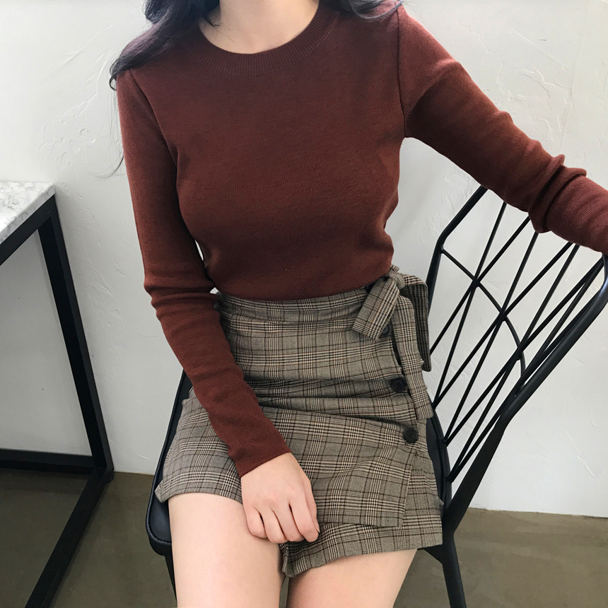 Round knit tee Girls tweed autumn coordination slim fit women