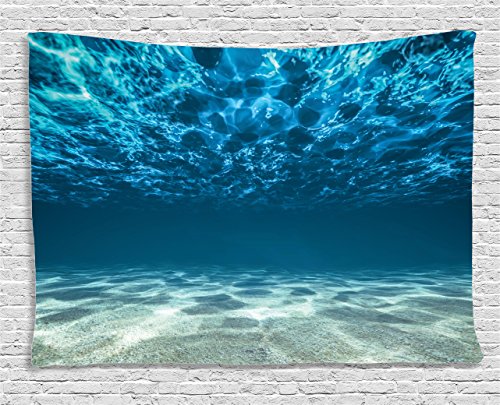 Ambesonne Ocean Decor Collection, Bright Gravelly Bottom And Wavy Surface Tropical Seascape Abyss Underwater Sunny Day, Bedroom Living Room Dorm Wall Hanging Tapestry, 80W X 60L Inch