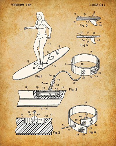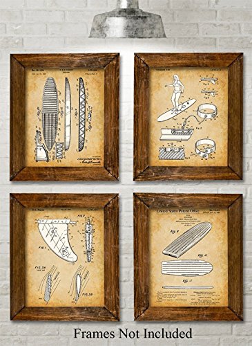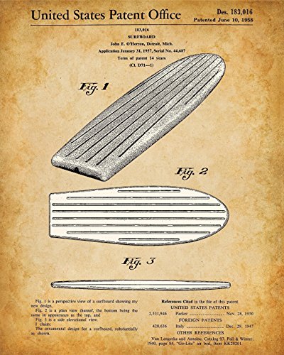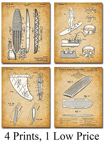 -. Brand : Personalized Signs by Lone Star Art -. Color : Brown -. IsAdultProduct : 0 -. NumberOfItems : 1 -. ProductGroup : Guild Product -. ProductTypeName : GUILD_HOME -. Size : Medium -. Title : Original Surfboards Patent P.R.Ints - Set of Four Photos (8x10) Unframed - Great Gift for Surfers