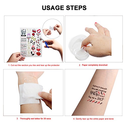 Durable waterproof and removable long last for 2-5 days, depends on how many showers you take and how many times you scrub the tattoo with soap and water,high quality and long lasting attached to the waist, chest, neck, arms, back, legs, bikini, paste any position you like