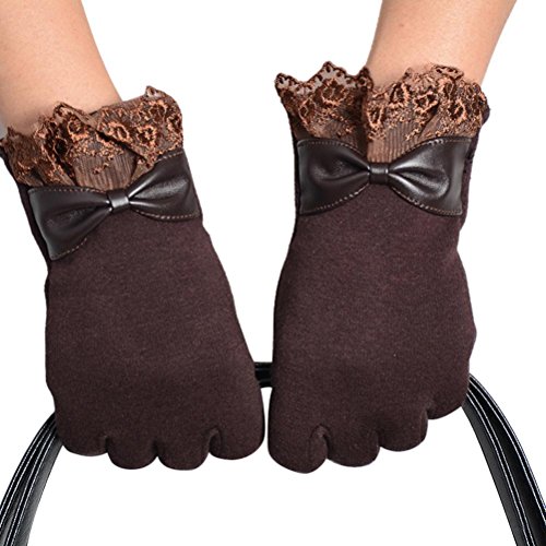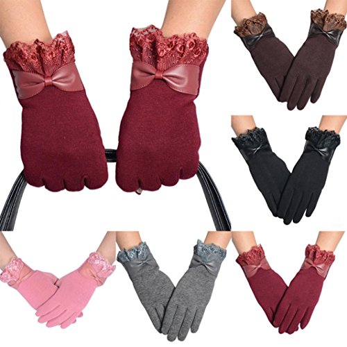 Voberry® Women Cute Lace Trim Warm Touch Screen Riding Drove Bow Gloves