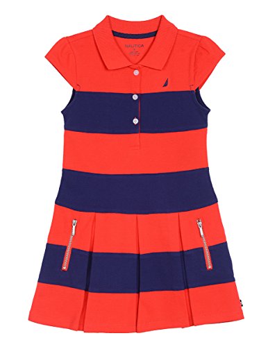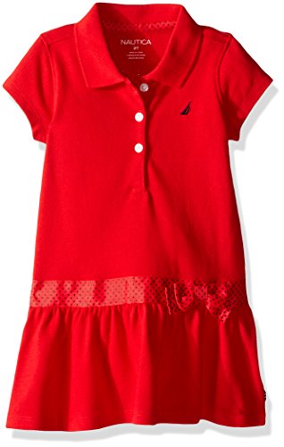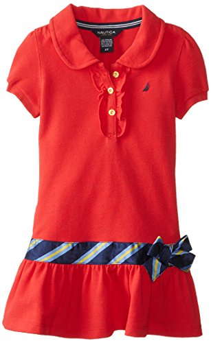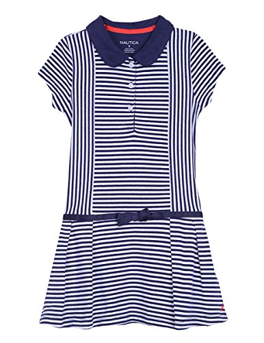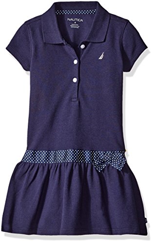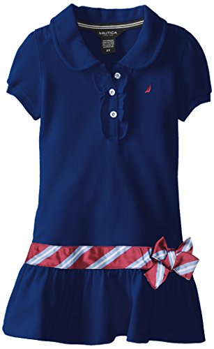 Modern take on the classic Nautica pique dress. Solid colors with polka dot dress and bow detail.