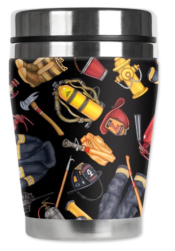 Mugzie Fire Department "Mini" Travel Mug with Insulated Wetsuit Cover, 12 oz, Black