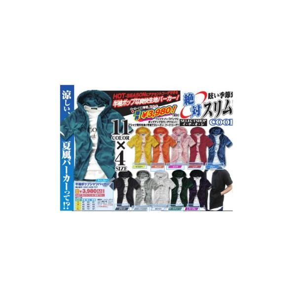 HOT-SEASONにアクセントコーデできる半袖ポップな爽快生地パーカー! <絶対スリム魅せでオシャレMENs! SELECT SHOP イチオシ COOL FASHION! 涼しい、夏風パーカーって!? Tシャツ・ハーフパンツにポップアップカラーアクセント! Tシャツ薄手生地+半袖で3シーズン、フードコーデ!! ※写真はサンプルを撮影したものです。撮影時のライティングやご覧になるモニターなどにより画像とお届けする商品との色合いが異なる場合がございます。予めご了承ください。