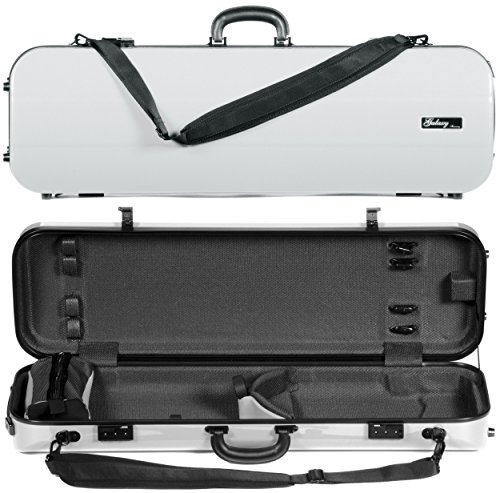 -. Feature : For 4/4 Violin / Beautiful White Finish - 4-Layer Shell - ABS and Polyurethane Exterior Construction - Weather Resistant Seal / Polystyrene and Polyurethane Interior Construction - Plush Polyester Interior - Instrument Suspension / Small Accessory Pouch - 4 Bow Holders - Velcro Neck Restraint - Tail Block Sponge - 2 Neoprene Shoulder Straps - D-Rings for Backpack Carrying Option / Extremely Light Weight: 4lbs (1.8 kg)