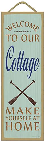 (SJT02616) Welcome to our cottage. Make yourself at home. (oar image) Primitive Wood Plaque - 5 x 15 inch size