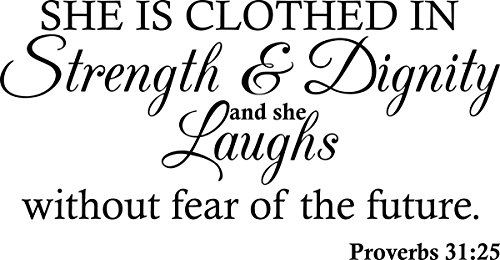 Wall Decal Quote Proverbs 31:25 She Is Clothed in Strength and Dignity and She Laughs Without Fear of the Future Wall Decal
